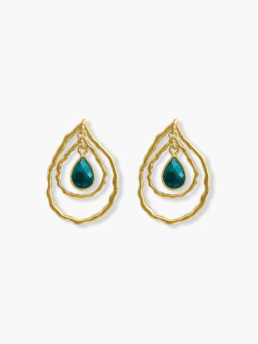 DOUBLE TEAR DROP MINI OVAL EARRINGS WITH EMERALD STONE