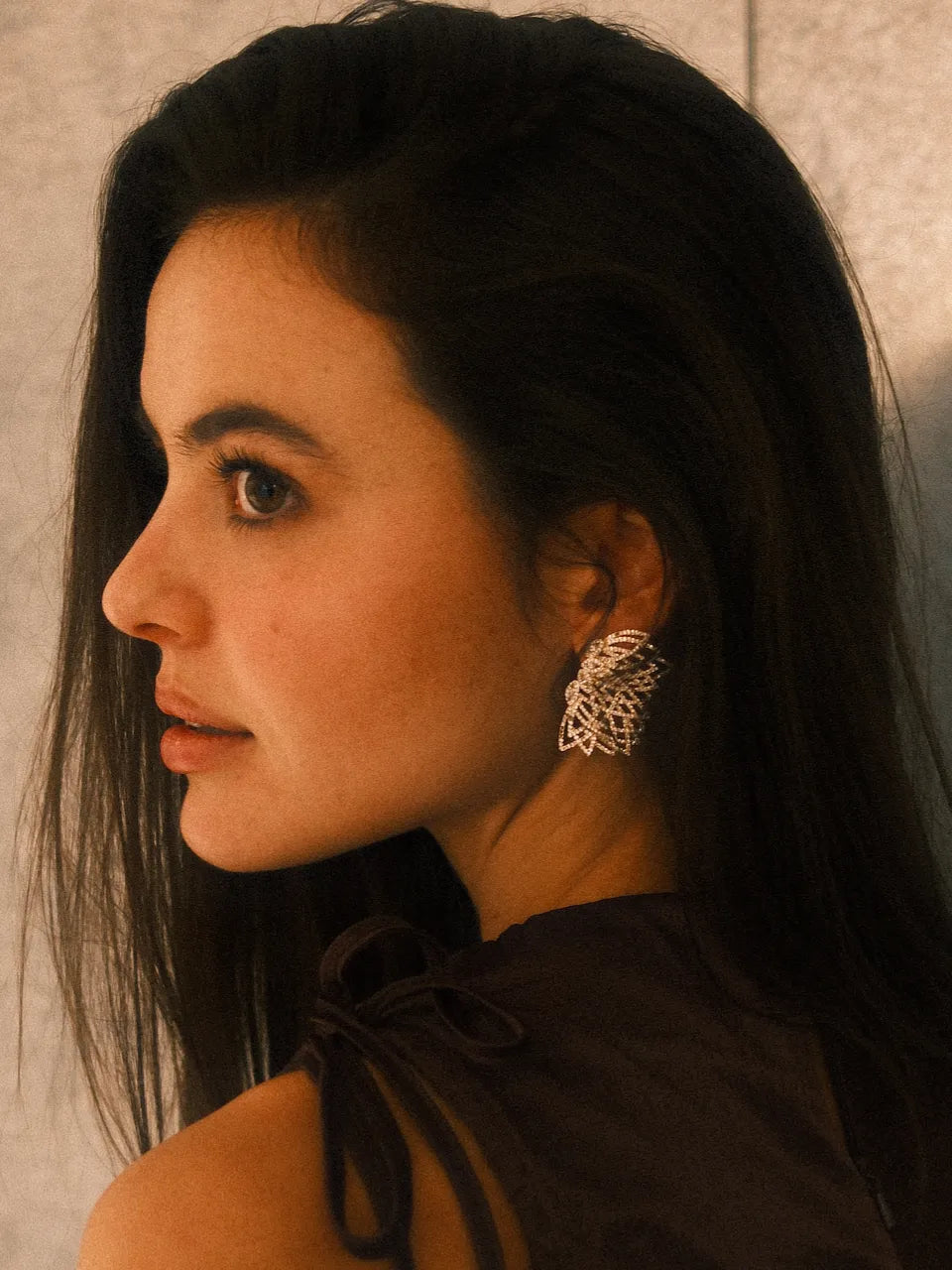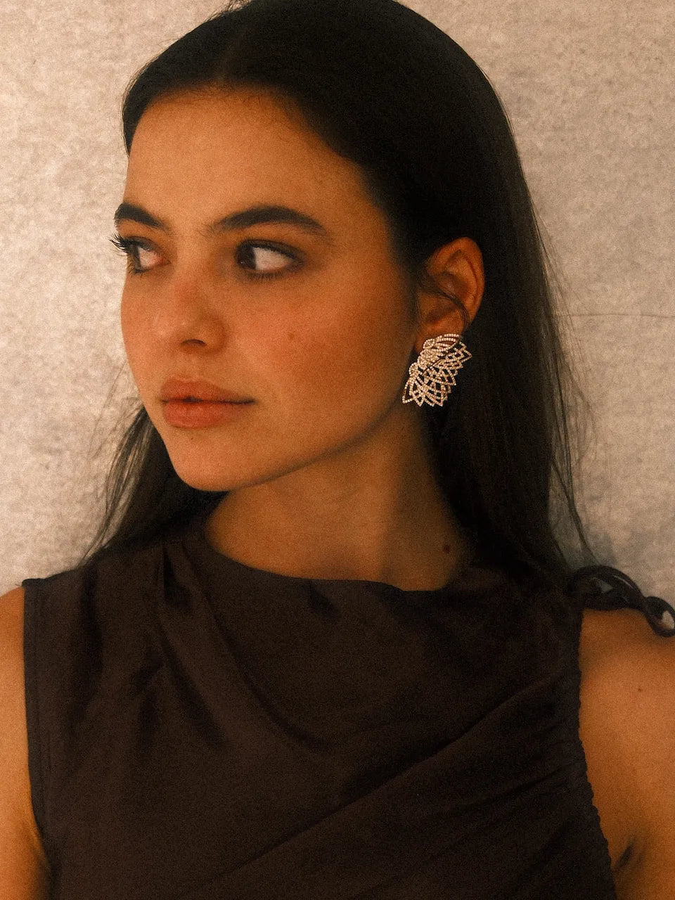 A striking winged design meets radiant high shine. These luxury statement earrings are crafted to add bold glamour touch to your party and evening looks.